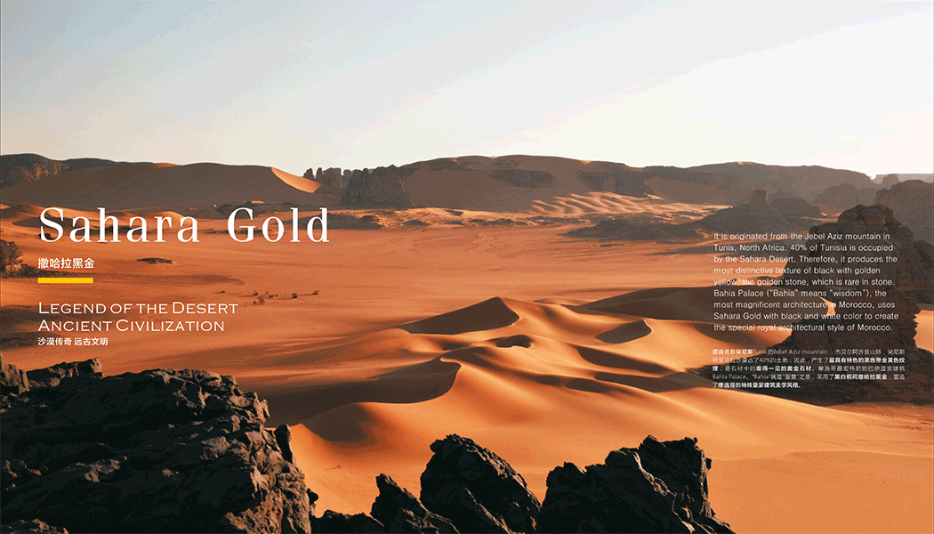 源于自然、勝于自然,再現(xiàn)撒哈拉的神秘與高雅,詮釋現(xiàn)代家居魅力。